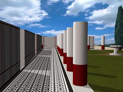 El peristil estava pavimentat en època dels Severs, amb mosaic del qual es conserven 12,5 metres amb una amplada de 2 metres, que era la que tenia el corredor. En època baix imperial es va malmetre part del mosaic al reconvertir l’aula 3 en zona de dipòsits.