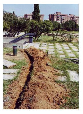 obres, per evitar la possible destrucció de les restes arqueològiques conservades en el subsòl. Abans d’iniciar aquesta intervenció però, l’arqueòloga M. Prevosti va fer un seguit de prospeccions aïllades en diferents llocs de la zona destinada a ser polígon industrial, ja que nombroses fonts orals afirmaven l’existència de restes de tessel·les i ceràmiques dins dels camps de cultius propers, obtenint resultats negatius pel que fa a la documentació d’estructures. A més, es coneix que durant l’obertura de l’Avinguda President Lluís Companys, a finals dels anys seixanta, es van destruir diverses estructures corresponents a la vil·la romana de Torre Llauder. En l’actual intervenció no es va poder comprovar l’existència de restes materials, només els tres enterraments.
