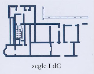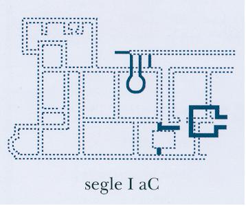 d’August es data la construcció de les estructures de la vil•la, que molt possiblement es van desenvolupar creixent considerablement. Tenim un sector residencial, són grans habitacions (aula 1,2,3) al voltant d’un distribuïdor (atrium) que connectava també amb el peristil i jardí (peristylum), a la part nord d’aquestes habitacions nobles trobem els banys (balneae).