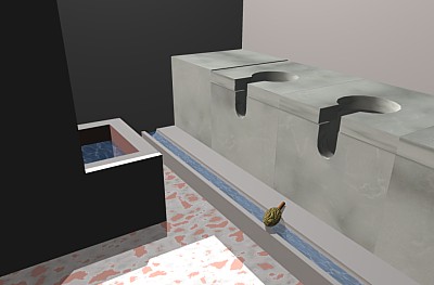 A l'època de màxim esplendor imperial, les latrines públiques eren llocs on els ciutadans es citaven, xerraven o acudien per a veure si algú els convidava a menjar. Al mateix temps gaudien d'unes comoditats per a nosaltres innecessàries i estaven decorades de forma sorprenent. Al voltant de l'elegant hemicicle o del rectangle del seu traçat, l'aigua corria sense parar per uns recs situats davant de seients amb una taula emmarcada per consoles esculpides en forma de dofí que servien de suport i separació. Era freqüent que sobre les consoles hagués fornícules ( cavitats a la paret) amb escultures d'herois o divinitats.